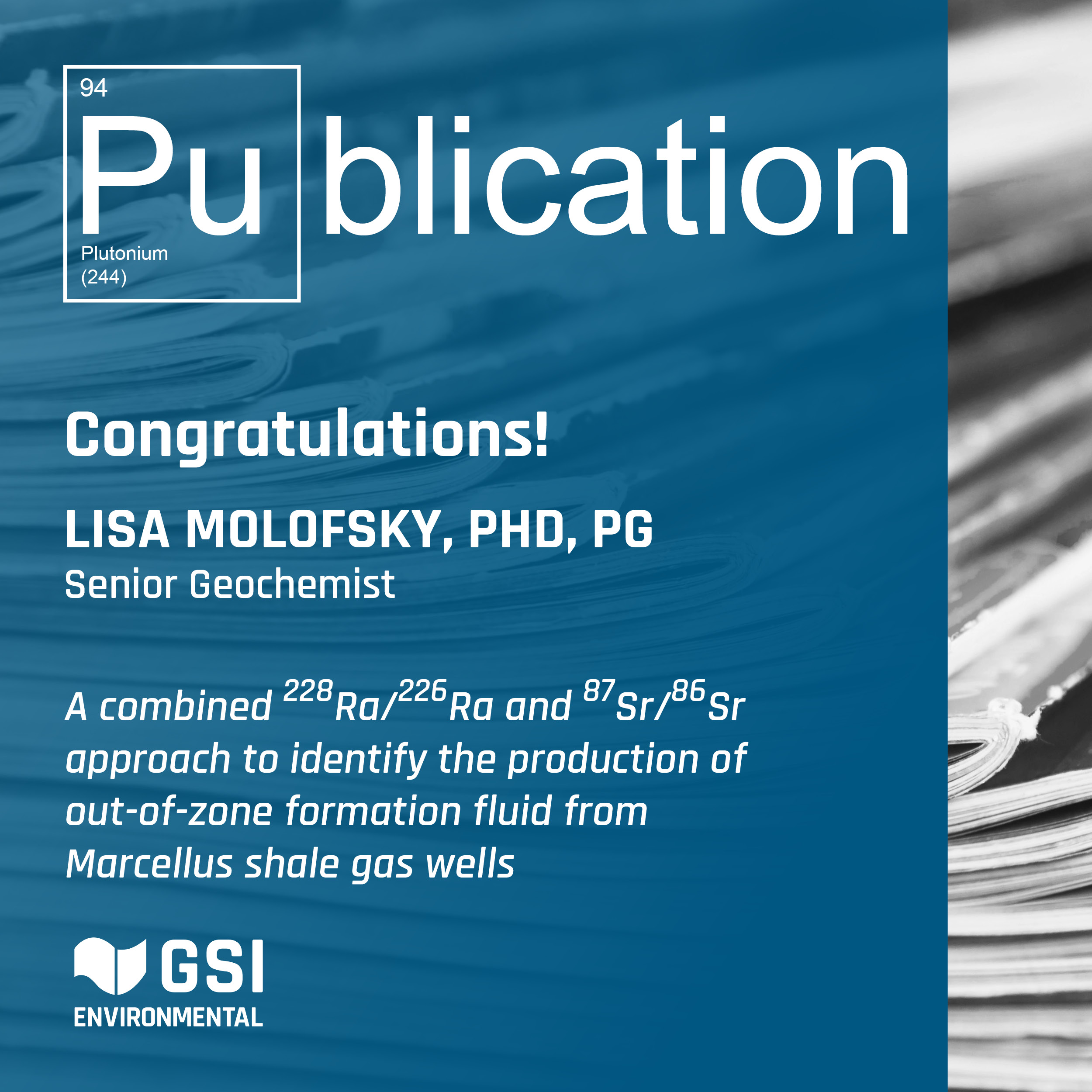 Lisa Molofsky, PhD, PG has co-authored a new article titled "A combined 228Ra/226Ra...